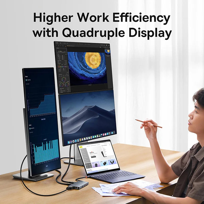 Whether at home, in the office, or on the road, the Baseus Hub adapts to your needs. With its wide compatibility and plug-and-play simplicity, it turns any location into a highly efficient workspace.